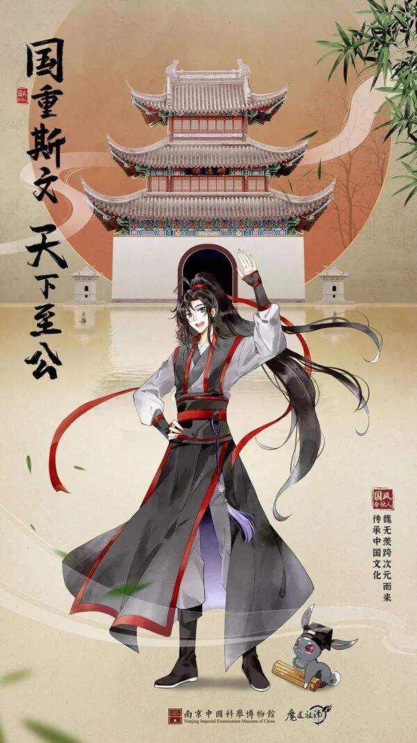 此次联动尝试,旨在国漫形象切实于国风概念相融入,吸引年轻人群更加重视中国传统文化领域,同时进一步扩大IP价值。跨界合作最终选定了魏无羡这一IP形象的原因,除了其本身庞大的粉丝基础,更是由于该人物具有强烈的中国特色。魏无羡本身所代表的人物特性,与科举博物馆所推广的“国重斯文、天下至公”的概念也不谋而合。