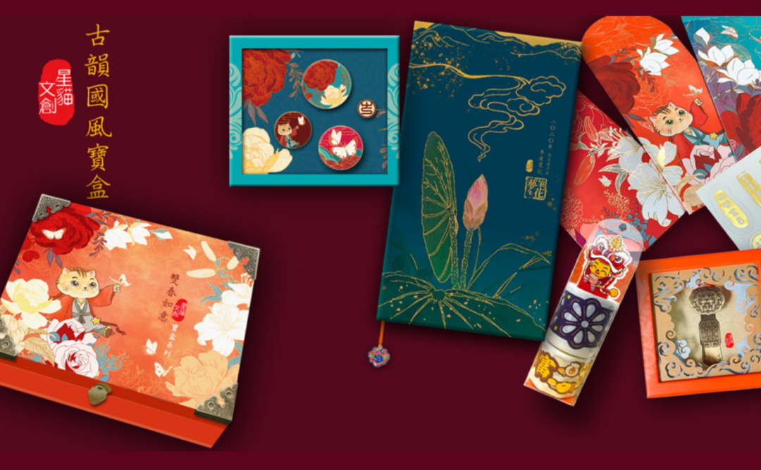 2019年南京合谷科技全新策划星猫宝盒,提出全能型的礼物宝盒概念,整合全部优秀资源,让礼物升级。在众多星猫宝盒系列中以古韵国风系列最为突出,传统与现代相结合,穿着汉服的星猫形象、妆奁造型的包装礼盒、宝盒内如意形状的U盘、精致的烫金红包和贴纸,充满古风韵味的手账本等元件内容,将传统元素与星猫形象完美结合。