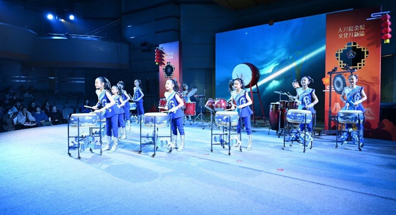 少年们推着鼓器走向舞台中央,伴随着亮起的灯光,为观众献上打击乐合奏《启航》。孩子们的纯真、活泼与打击乐激荡的音符互相碰撞,现场瞬间沸腾。